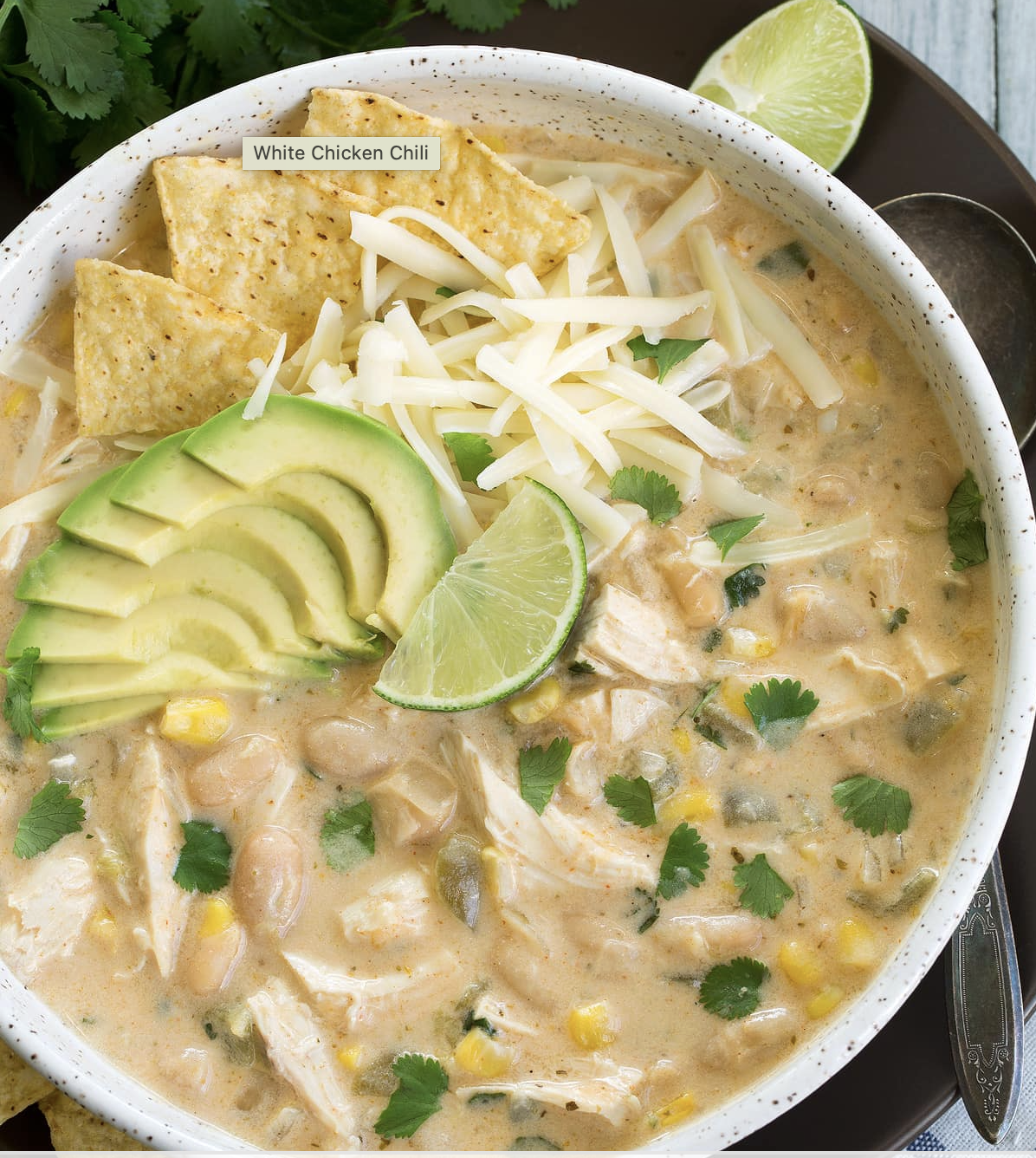 “This White Chicken Chili is hearty, warming, creamy and perfectly comforting. It's a great alternative to traditional beef chili and makes a simple, yet completely delicious dinner! Makes about 8 cups.” by Cooking Classy
